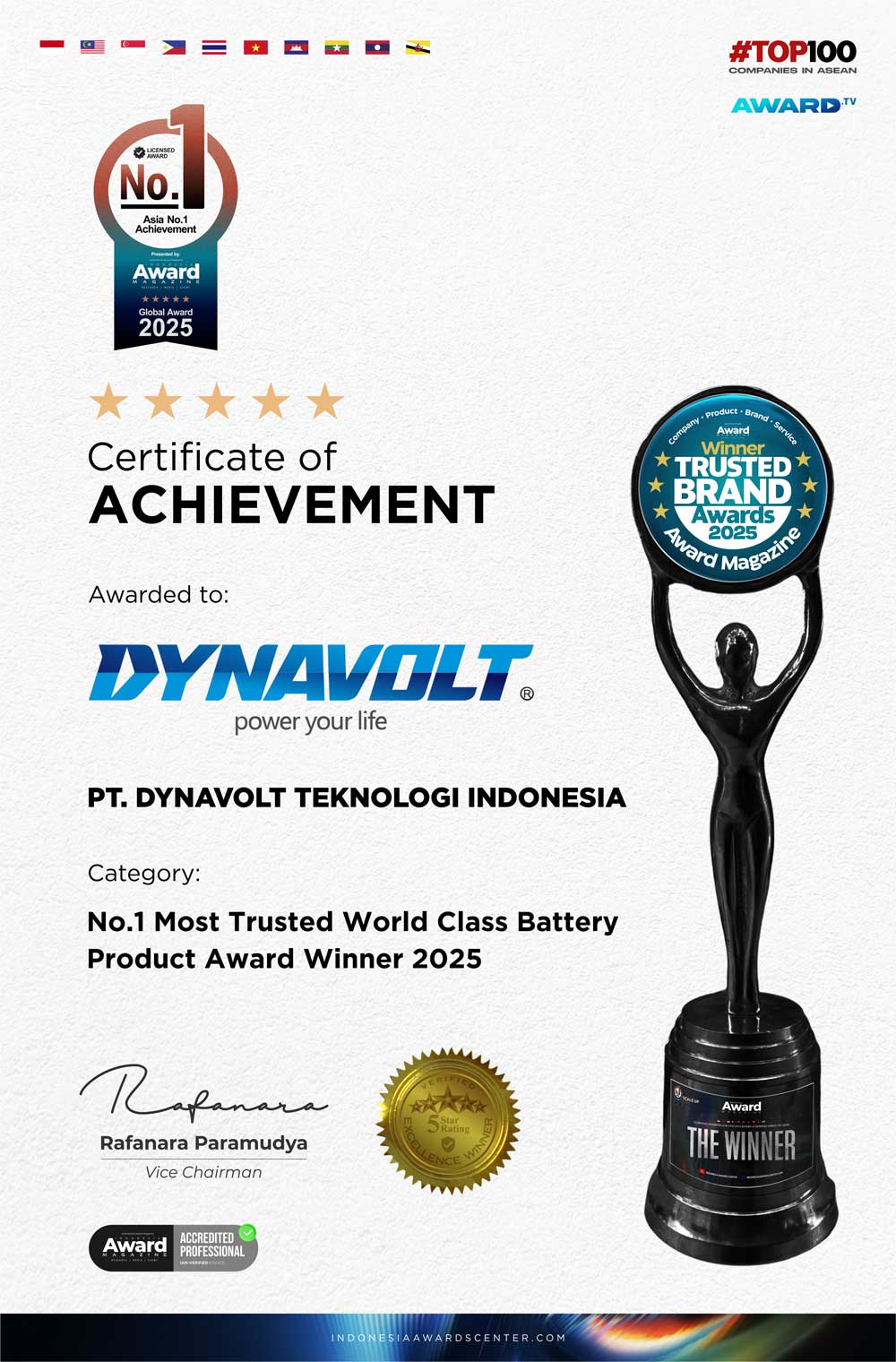 Award Certificate for PT. Dynavolt Teknologi Indonesia