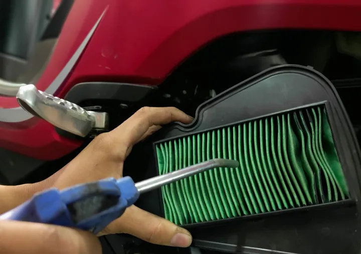 Illustration of cleaning a motorcycle air filter (Image source: assets.pikiran-rakyat.com)